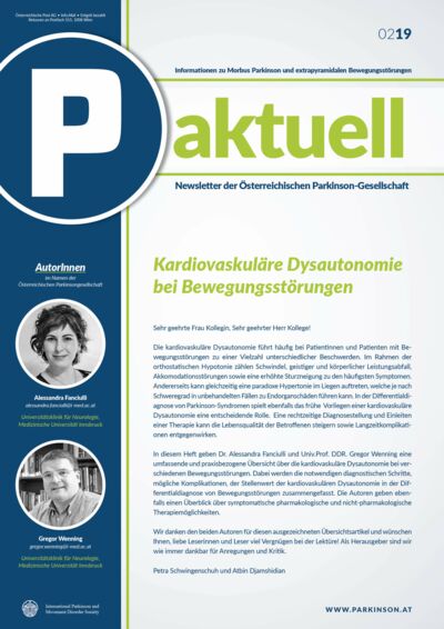 In diesem Beitrag wird dem Leser ein Überblick über das diagnostische Vorgehen bei Verdacht auf kardiovaskuläre Dysautonomie, über den Stellenwert der kardiovaskulären Dysautonomie in der Differentialdiagnose von Bewegungsstörungen, sowie über Kurzzeit und Langzeit Folgen einer kardiovaskulären Dysautonomie, geliefert. Zum Schluss wird eine evidenz-basierte Einführung in die Behandlung der OH und verwandter Symptome gegeben.